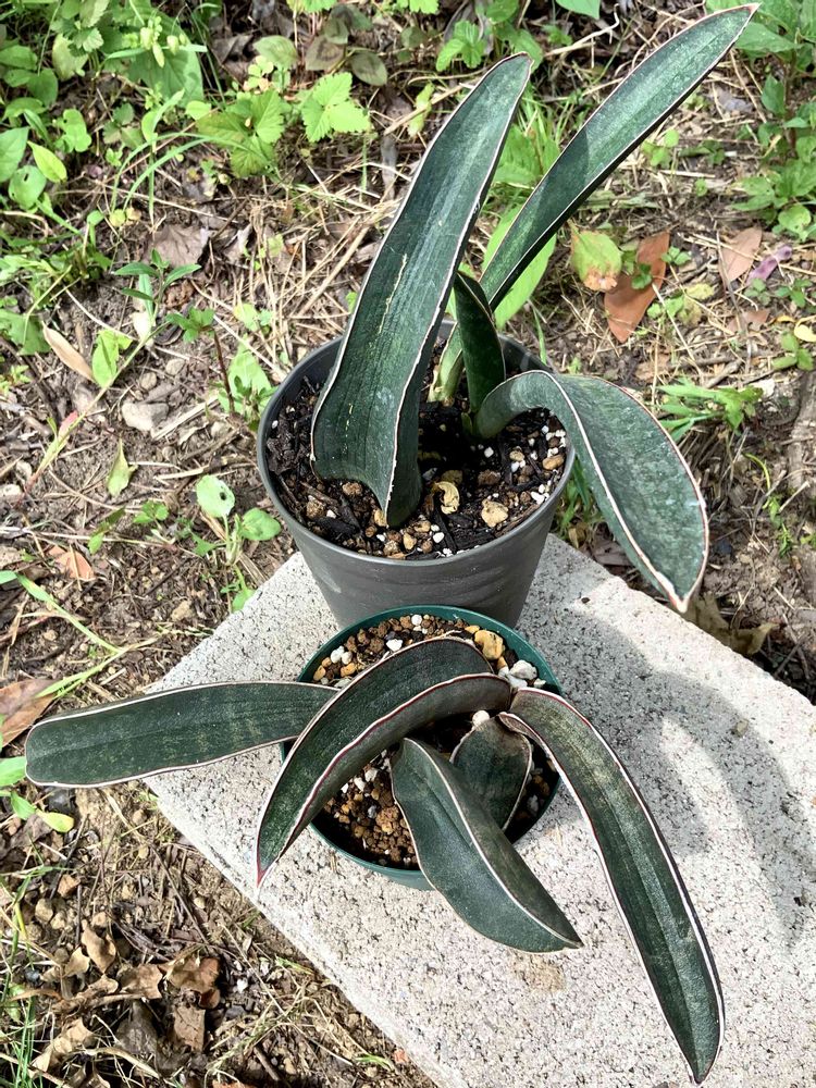 サンスベリア ブルーバット(↑)とピンクバット(↓)