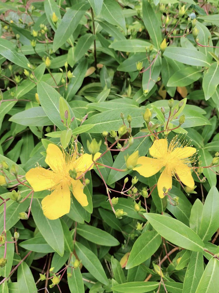 ヒペリカム(オトギリソウ)の仲間。園芸的にはビヨウオトギリともよぶそうです。学名はヒペリカム モノギナムです。
