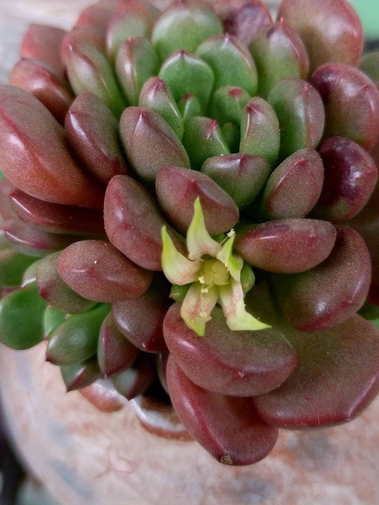 うちのはダイソー出身で、形が整うまで1年かかりましたが可愛く変身してくれました☺️うちで貴重なツヤツヤ赤の多肉です😆葉っぱがラメっぽくて可愛いですよね🥰