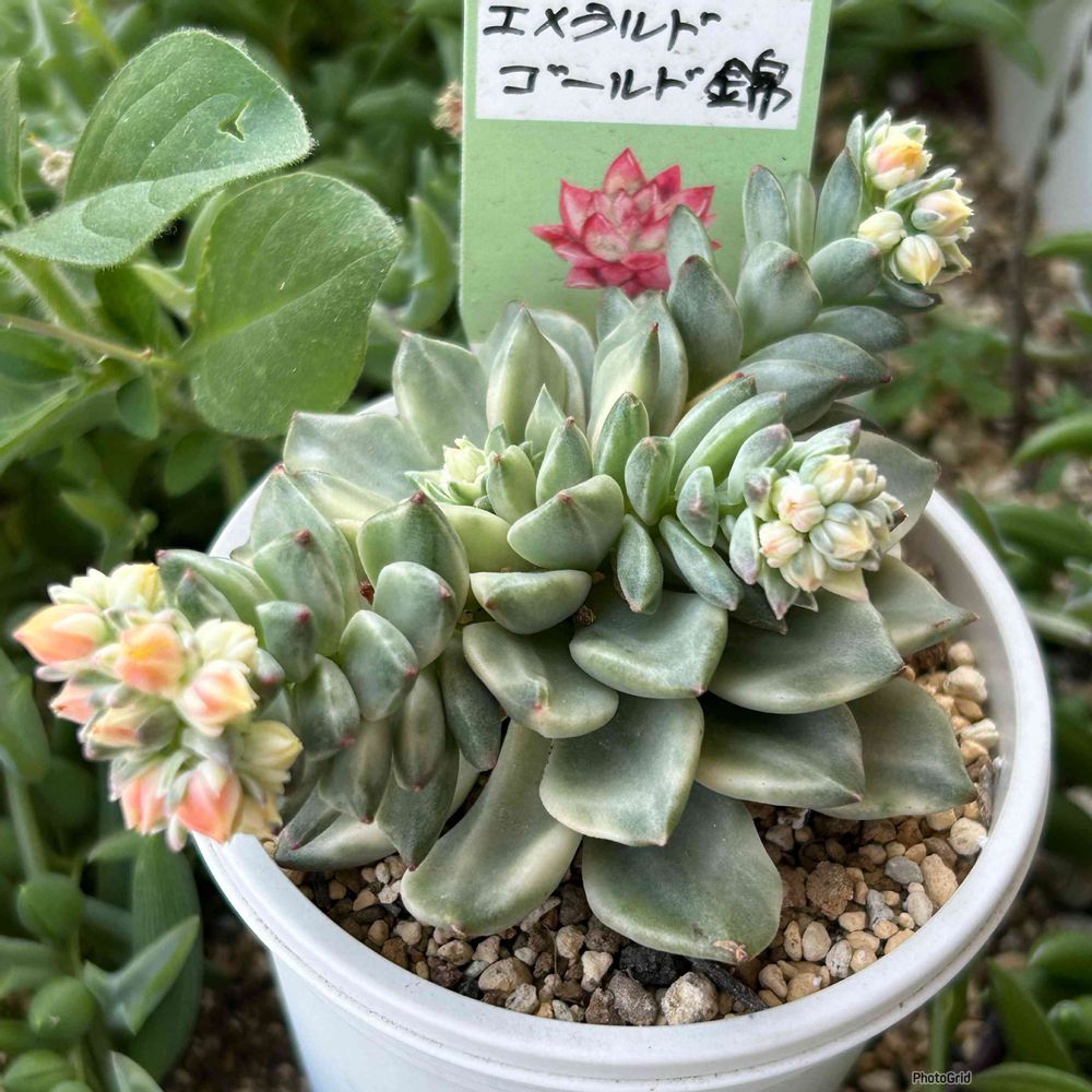 今年お迎えしたエメラルドゴールド錦。花芽が上がってきました。どんな花が咲くのか楽しみです🤗