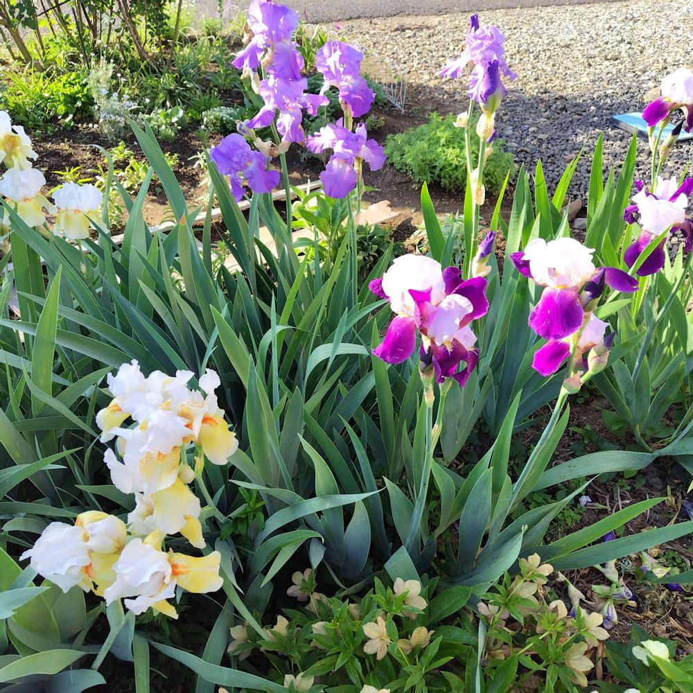 3枚め…花期が長〜いジャーマンアイリスたち…次々に咲いてるけど、なかでも紫💜が1番好き💓