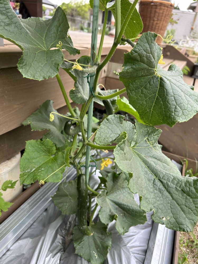 葉っぱは元気なのにきゅうり🥒が曲がってる肥料不足なのかな🤔
