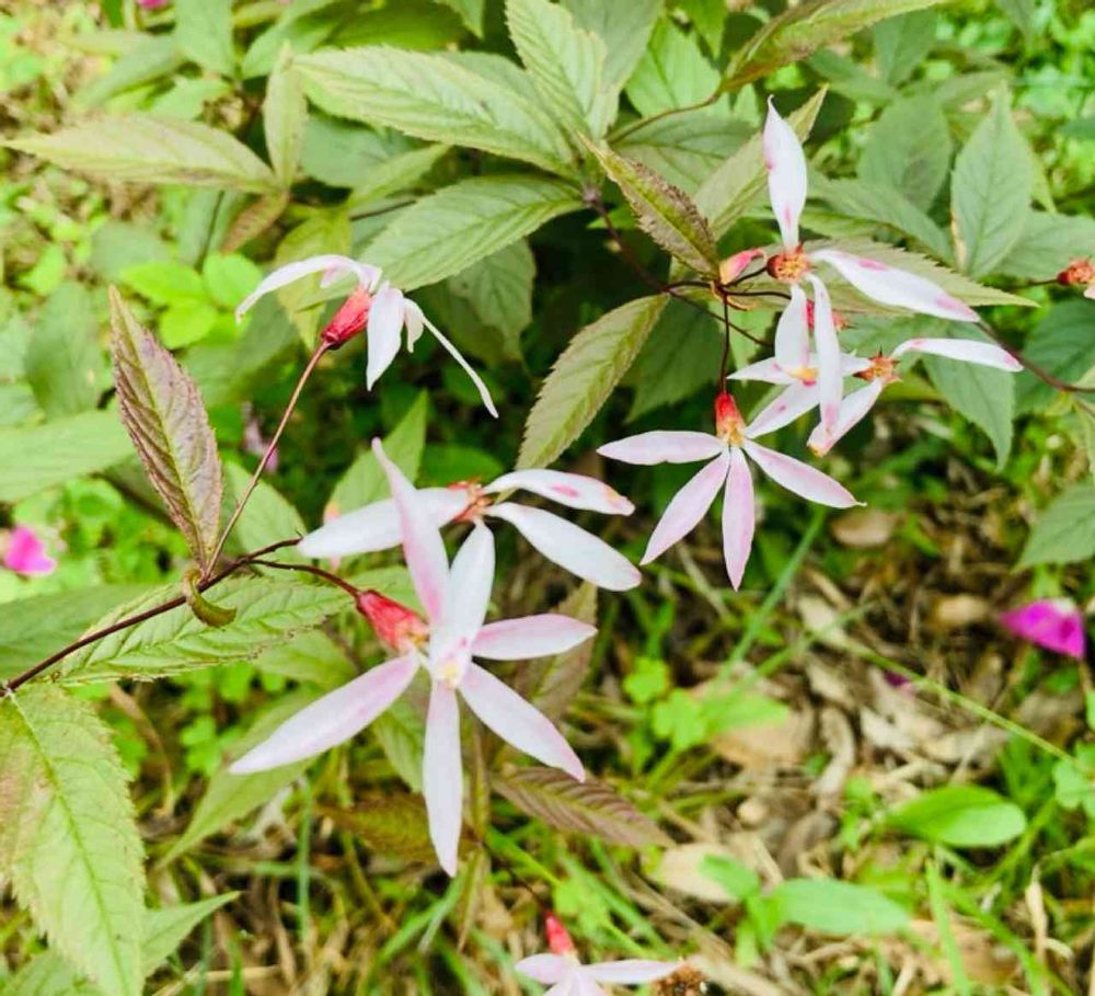 スッとした細く繊細な白い花弁が特徴の「三葉下野(ミツバシモツケ)」も、京成バラ園の御池の周りに咲いていました😊🌱✨