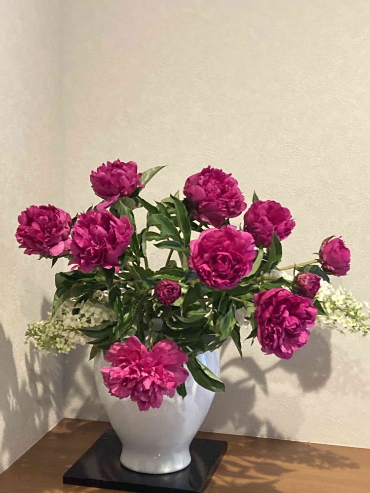真紅の芍薬とカシワバアジサイも素敵💓
