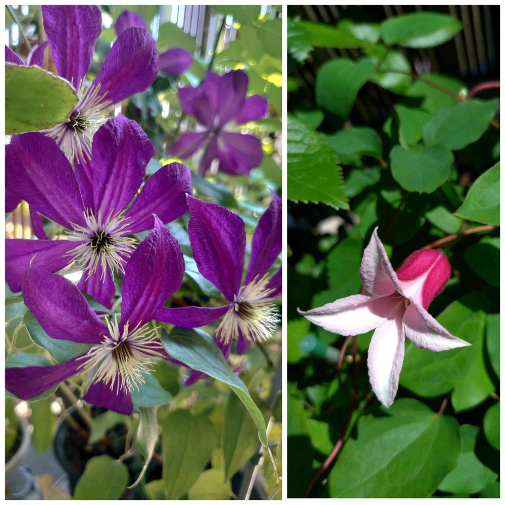 ミケリテ💜とエールフクシマ💗ヽ(=´▽`=)ノ可愛らしい花が咲きました🤗🌱✨今日は風があるのでそれほど暑くなくて、午前中は草むしり頑張りました( ‘ᴗ’ )و🌱🌱