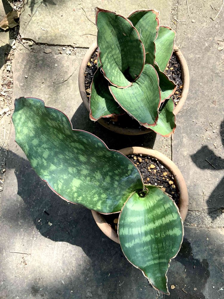 サンスベリア ドラゴンウイングの親株(↑)と子株(↓)