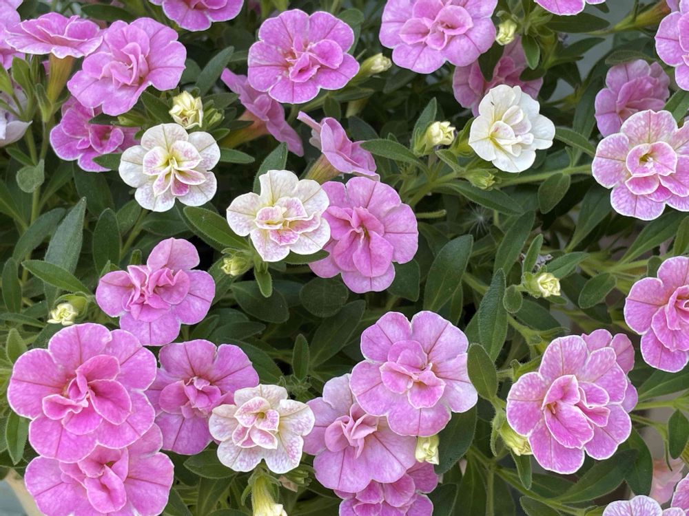 カリブラコア、春色くれよんもピンクの八重咲きカリブラコアなのに、カメレオンも同じような花🌸去年どーして選んだんだろ(*¨*)ハテ?!