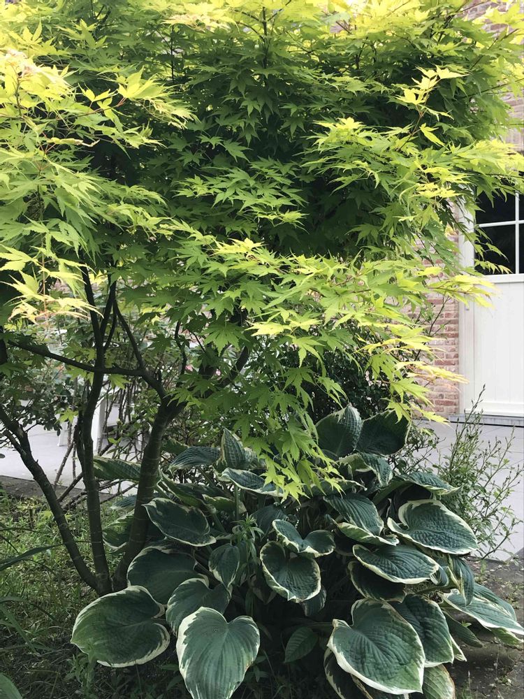 紅葉の下のホスタも今年は随分大きく育ちました。雨が多い年だからですね。😅