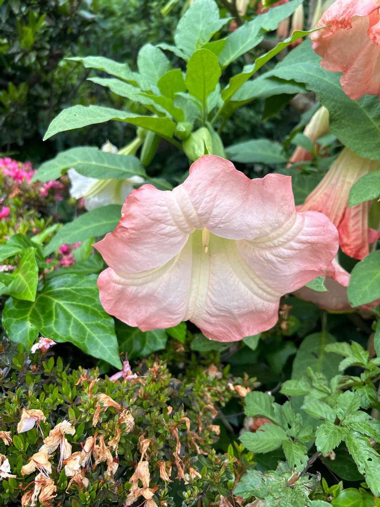 花が下向きに咲くのが特徴、上向きに咲くのがダチュラこれも毒を持ってます綺麗な花なんですけどね😅