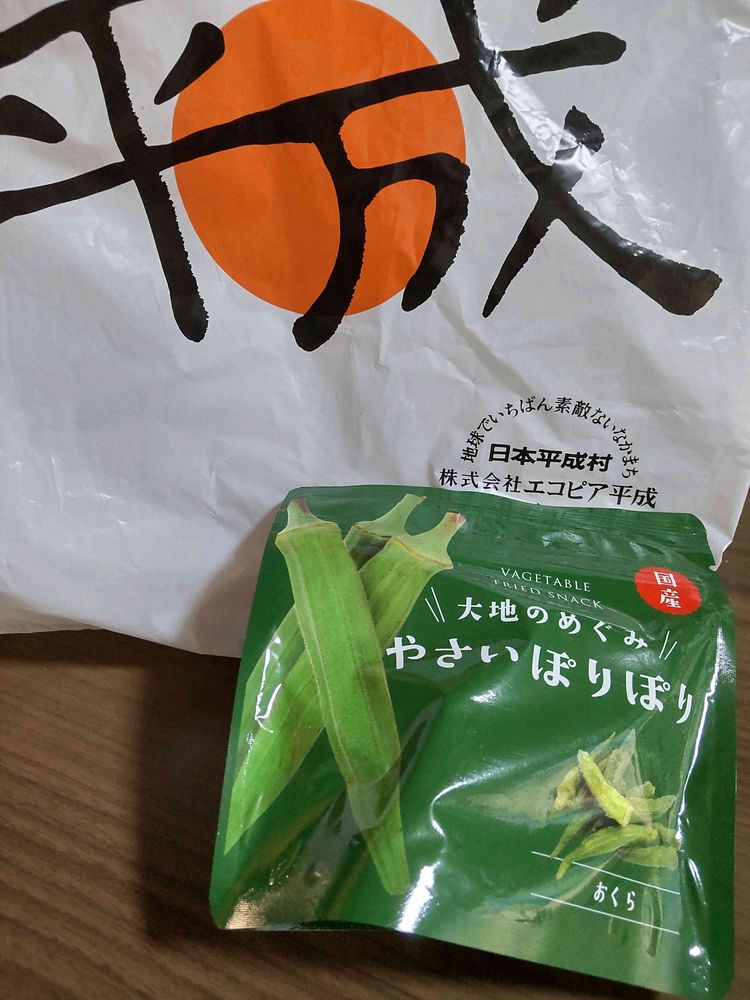 ①道の駅売店で、『やさいポリポリ』スナックをお土産で😁こちらはオクラですが、他にジャガイモ、里芋などありました。フライドですので、若者向けな感じ🤔味は薄味で野菜の味します、美味しい😌食レポになってる🤣