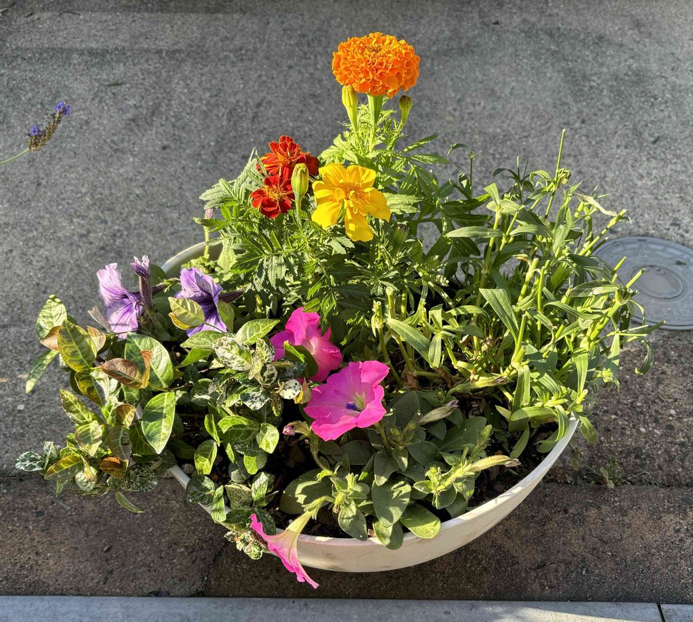 今日は午前中に近くのホームセンターに行って、パンジービオラの替わりにペチュニアとマリーゴールド(いまだにローズマリーと言い間違える😣)を買って植え替えました。ダイアンサステルスターとハツユキカズラを残して。