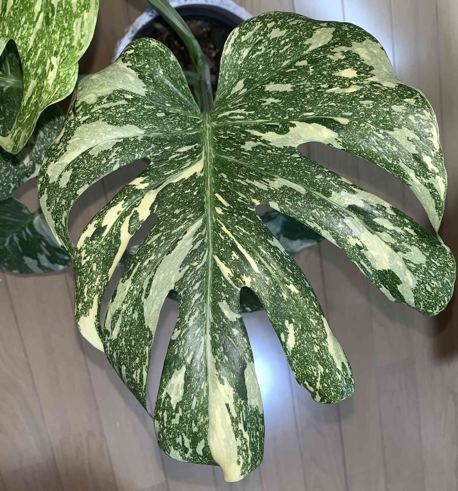 斑入りモンステラ・タイコンステレーション(タイの星座) 家に来てから開いた2枚の新葉です。