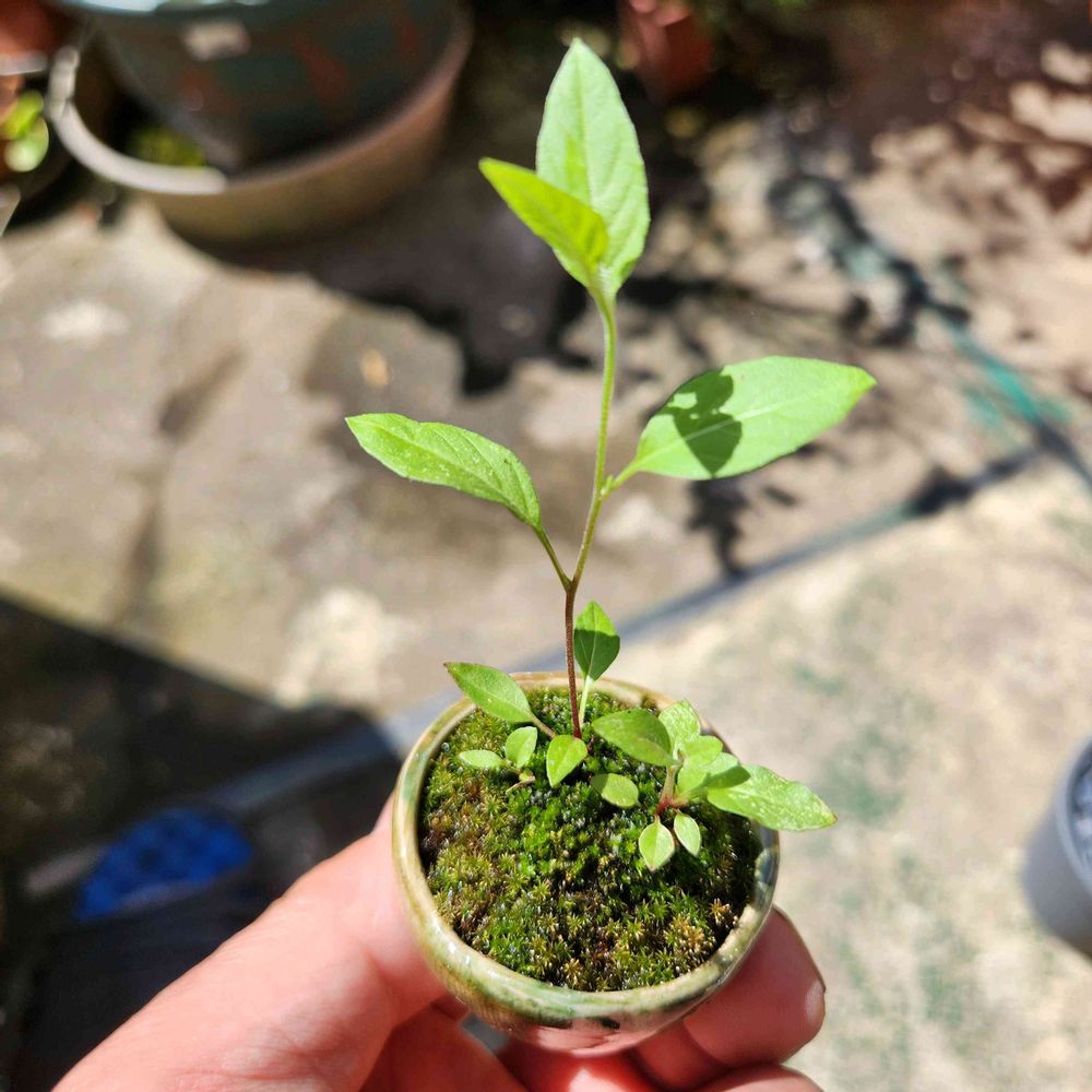 遊びで赤花夕化粧を豆盆栽🙂これも花咲くかな?