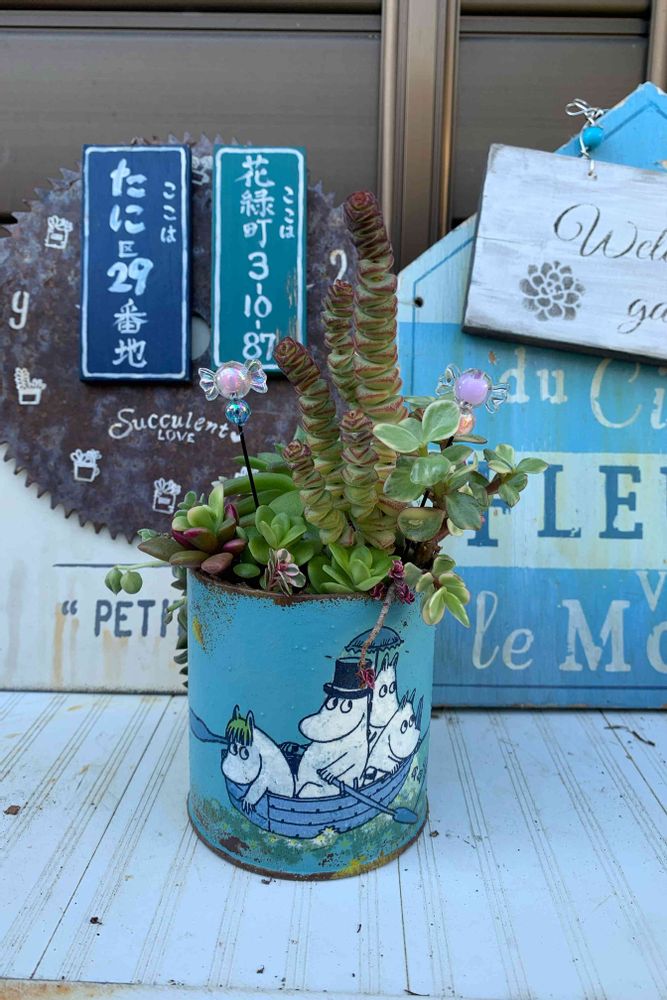 リメ缶にNijiro mishosenmonten多肉のラズアガとセダムを使って