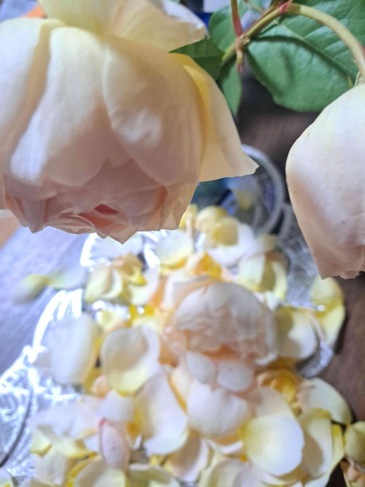 はらりと花びらが軸を離れても、しばらくは香ってるので、下にレースのお布団を置いて、最後まで存分に楽しみます