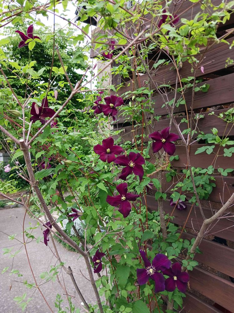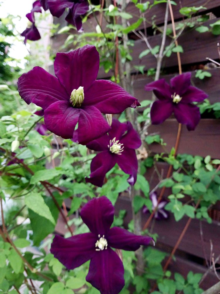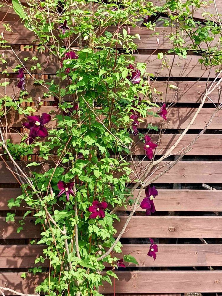 これまではトレリスに絡ませたり自転車小屋に絡ませたりしていたこのクレマチスたち…