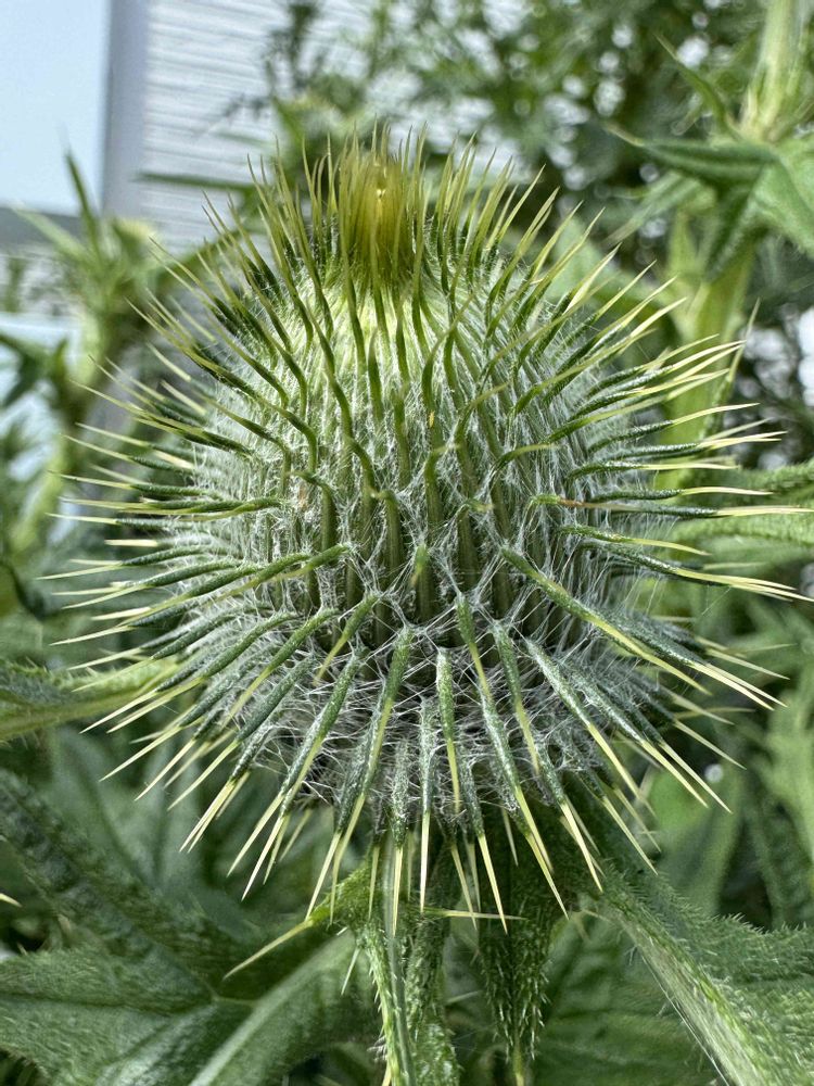 アザミのトゲの威力はほんとにエグいです。退治のとき用意したゴム手袋を役立たずでした😆