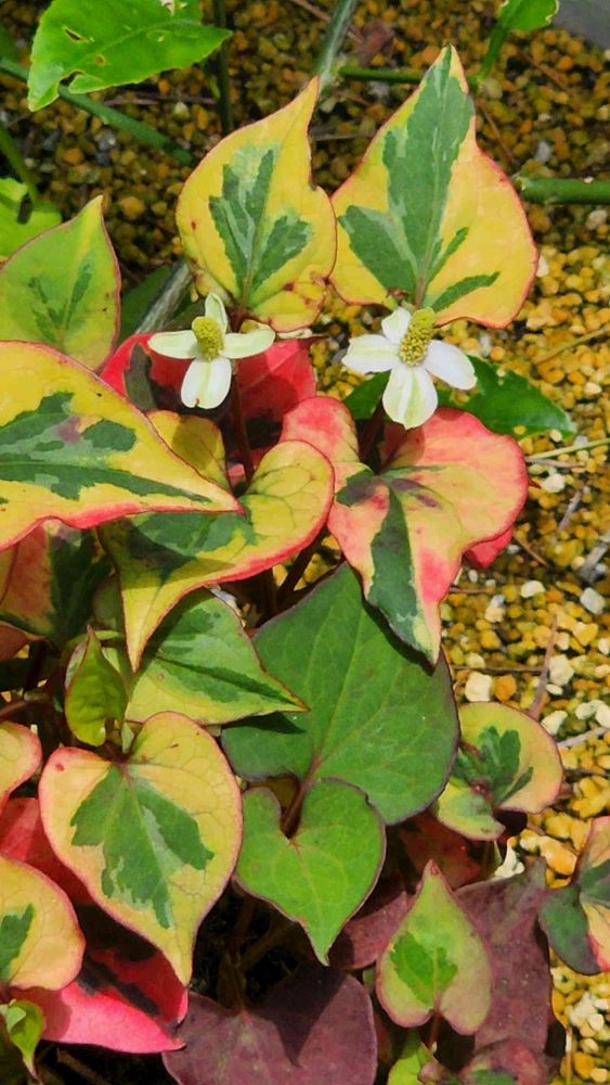 昨日薬草園で撮った写真で🔍️するとカメレオンドクダミとか五色ドクダミとか出ました。