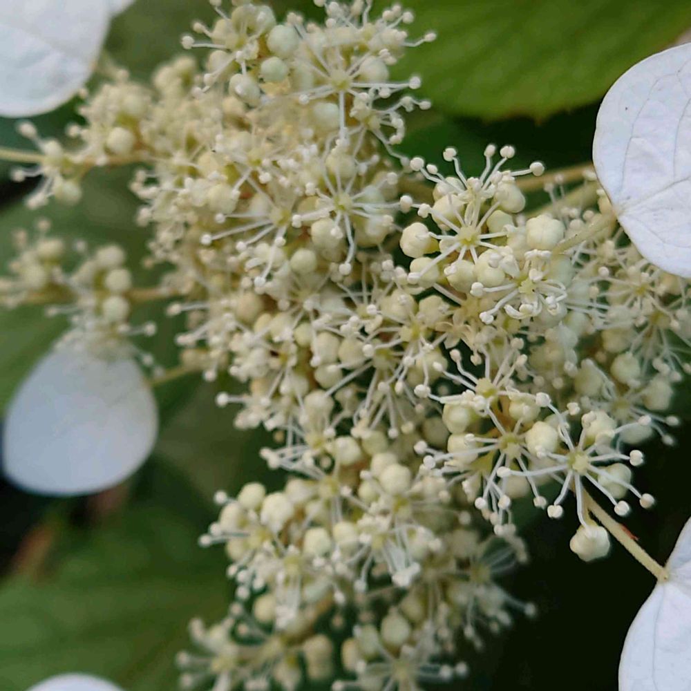 ツルアジサイとばかり思ってたら、こちらのGSでイワガラミって花だと分かりました〜ツルアジサイとは葉っぱと花が違うみたいデス