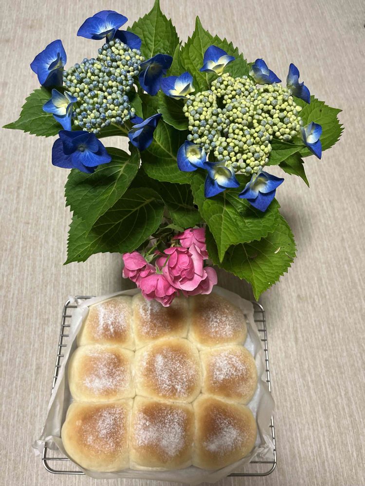お花もとっても濃い 青色 素敵です💙💙🤍 が パンにも目が行きます 美味しそう お腹空いてきました~☺️