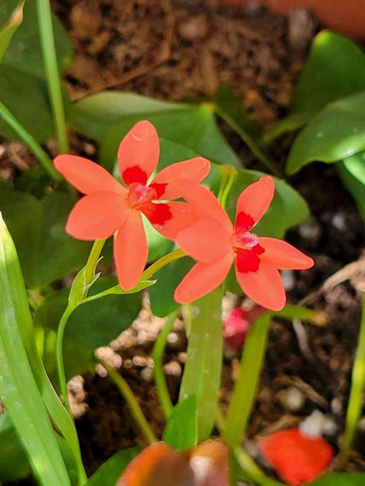 ブーゲンビリアの鉢にひょっこり可愛いお花が咲きました。
