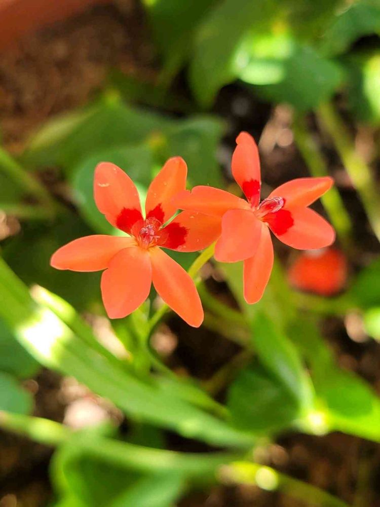 背丈10cmほど、花径1.5cmほどで、調べるとヒメヒオウギ(姫檜扇)と判明。