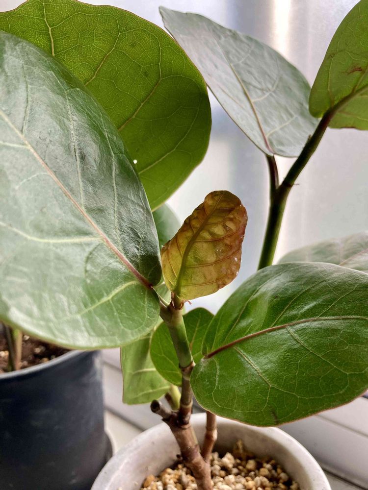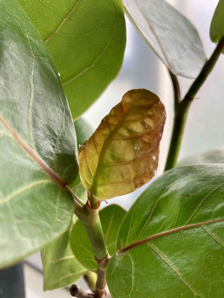 植え替えたら下の方の葉が何枚も落ちて心配していたけど、初めて新葉が出てきました👐立派な葉っぱに育ってねー!