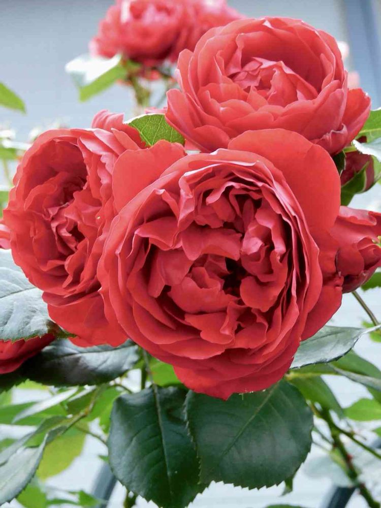 このバラは、花の濃赤色と葉の深い緑がベストマッチ