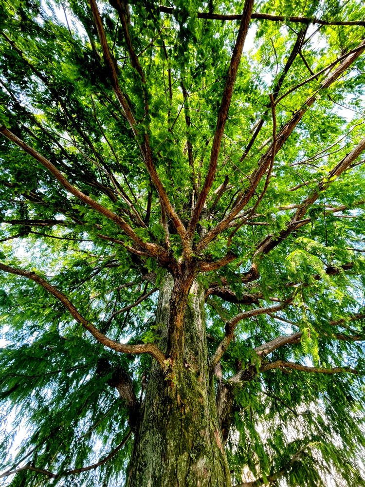 真下からの撮影,朝の散歩道,メタセコイヤの樹木の投稿画像