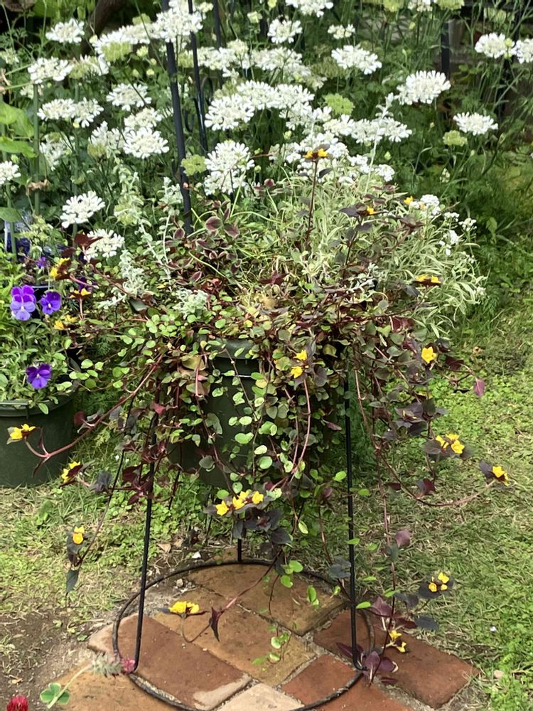 寄せ植えのカラーリーフとしてヘリクリサムとワイヤープランツと一緒に植えました😊