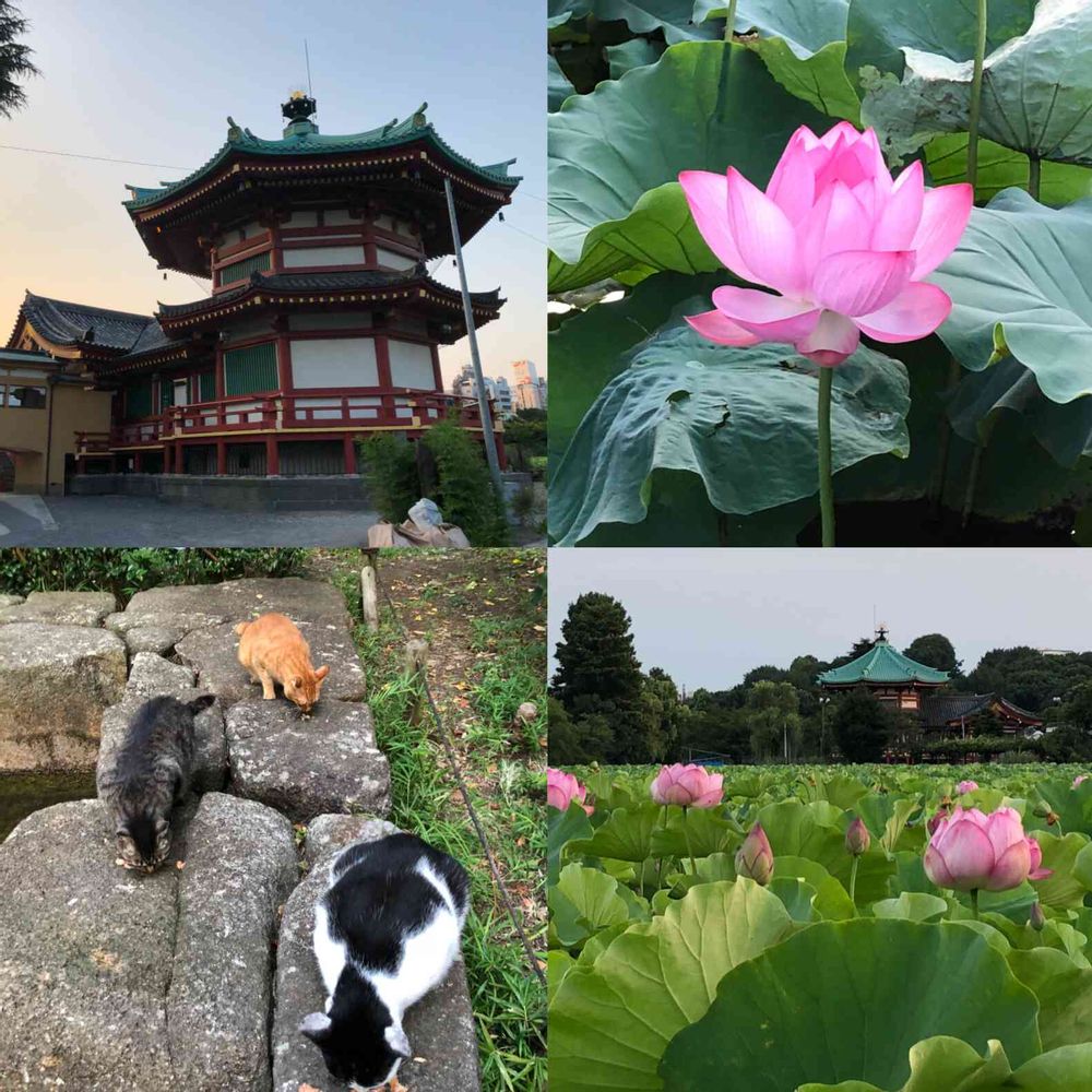 仕事終わり上野公園不忍池で大蓮見てお散歩しニャンコにエサあげてました!