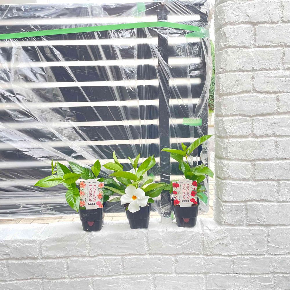 まことさん、すごいなぁ、プロ並み。ちゃんとビニルで守って、マスキングで止めて。仕上がりもステキです!クロのフェンスに絡ませるのですね🎵