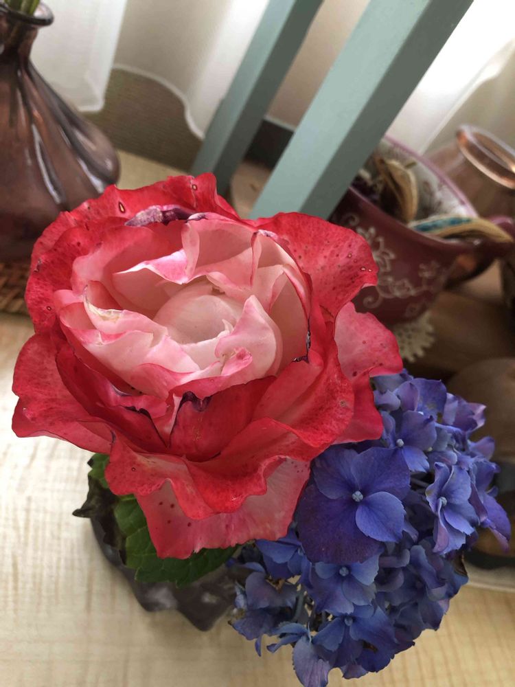 庭のバラと紫陽花🌹💙