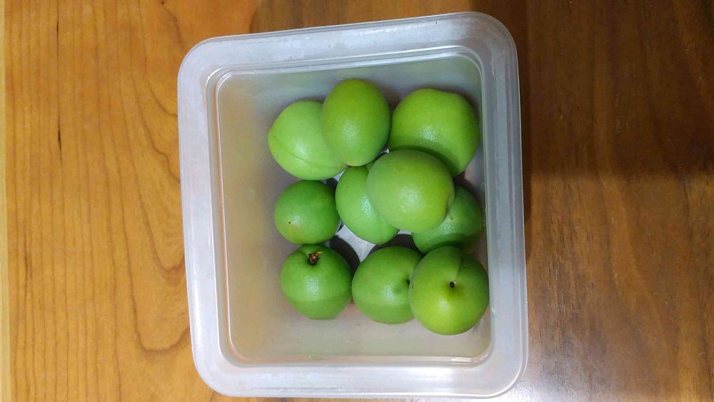 今年の梅の実はごくわずか。2日めの収穫ですが一昨日も10個でした。花の咲く時期が早すぎたようです。😂😂😂