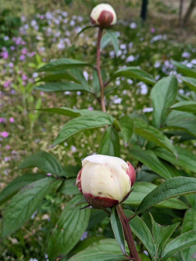肥料を慌ててやったかいがあり、蕾が沢山ついて、いつの間にか咲いていたピンクの芍薬。ググるとムッシュジュビリーらしい🙄白い芍薬。ピンクと一緒に亡くなった近所のおばあちゃんからもらったものなんだけど、球根?根塊?を虫に喰われ腐っていてこれはダメだとゴミ捨て場になげといたのがおばあちゃんが亡くなった翌春、いきなり芽をだした😳みんなで「わのこと忘れるなど‼️」ていってるに違いない😅こりゃちゃんとしないと罰当たるね〜😂となり、プランターにインして半分放置…が‼️今年は咲く気満々です😅