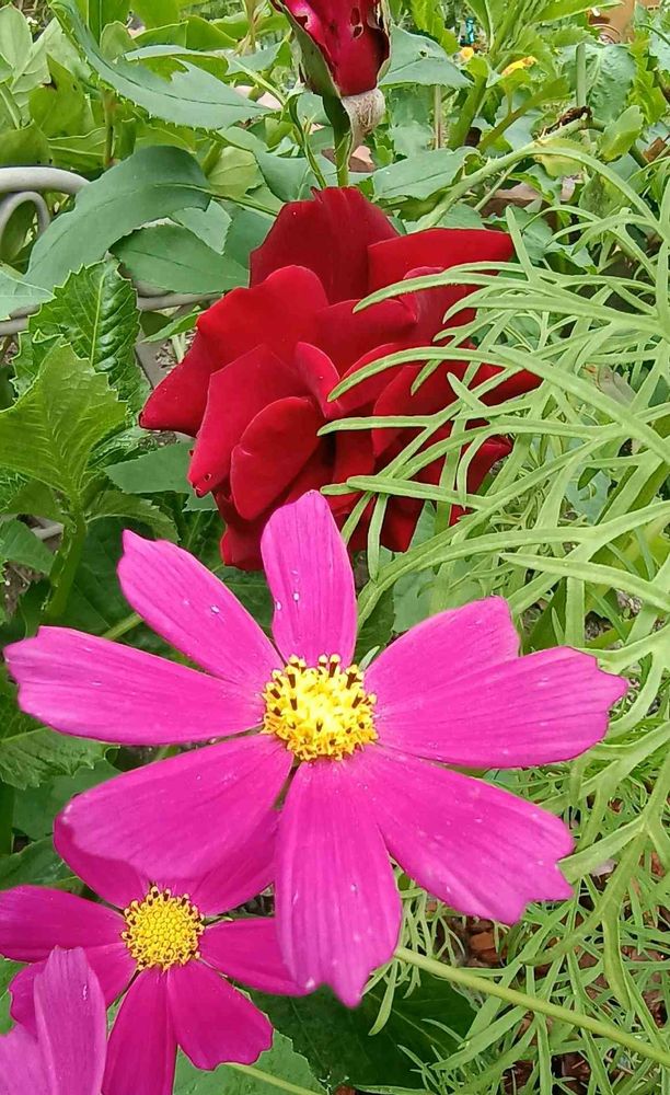コスモス🌸とバラ🌹のコラボ可愛い💕