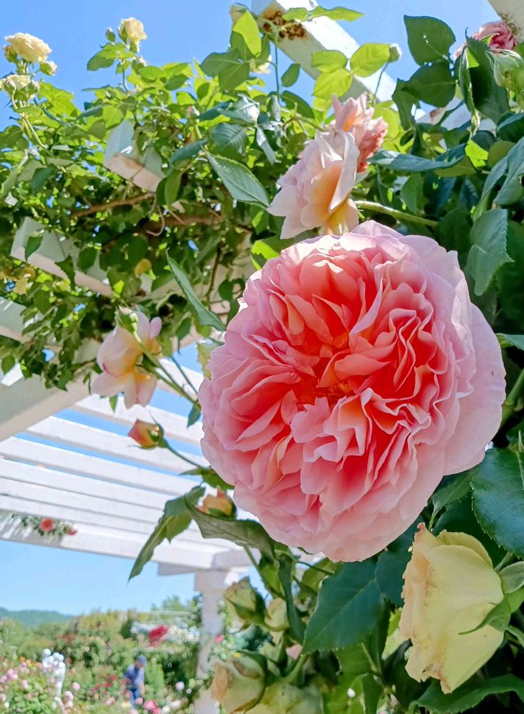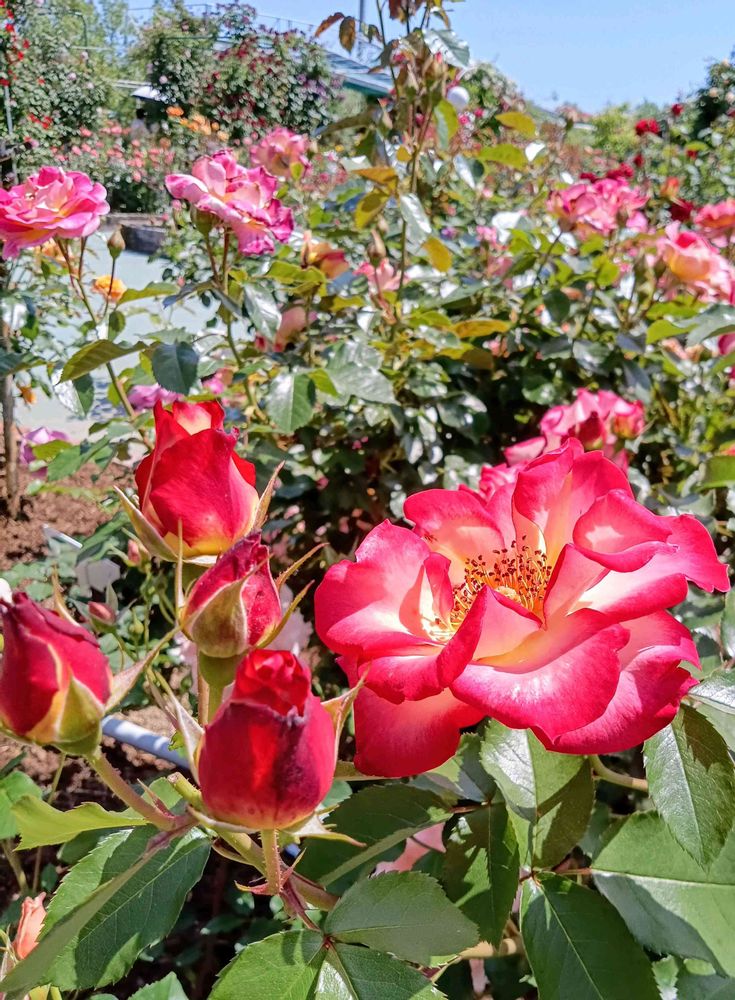 青空に映えてどの薔薇も綺麗ですね〜😍