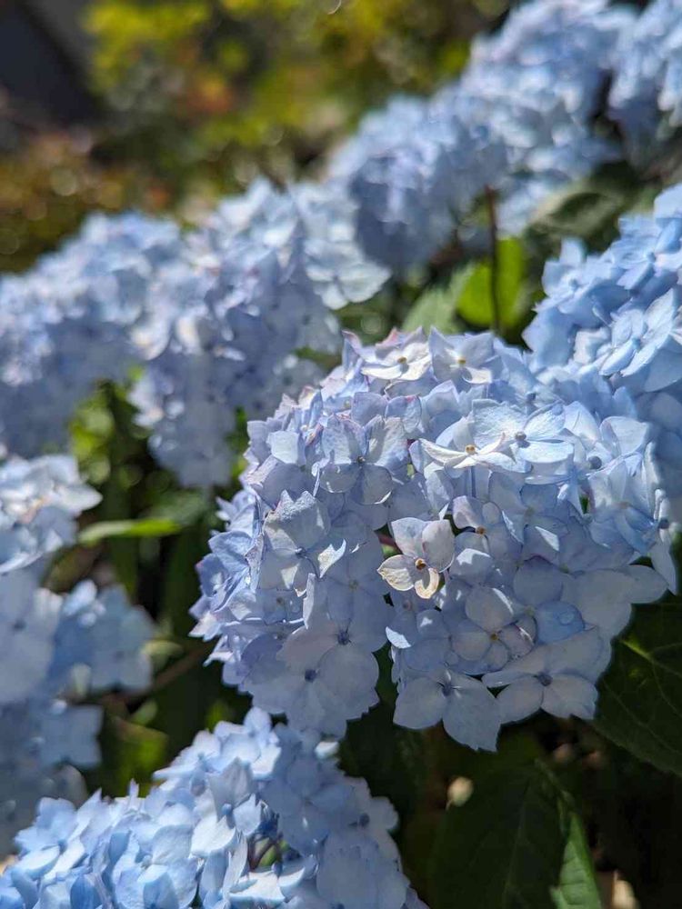 白とピンクの紫陽花が多い中、昨年の濃いめのブルーのヤマアジサイ(ワンコインの幼い苗)、こちらもお迎え🩵優しい色です🩵