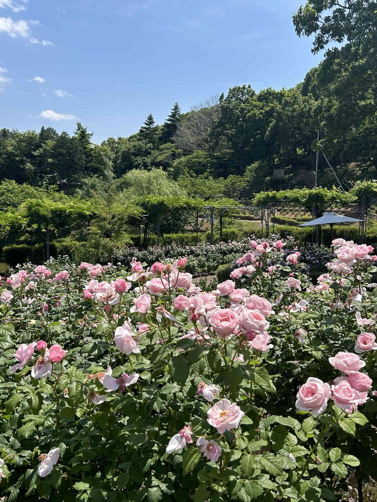 天気も良くて緑と青のコントラスト、そして広がる色とりどりのバラたち…サイコーでした(о´∀`о)