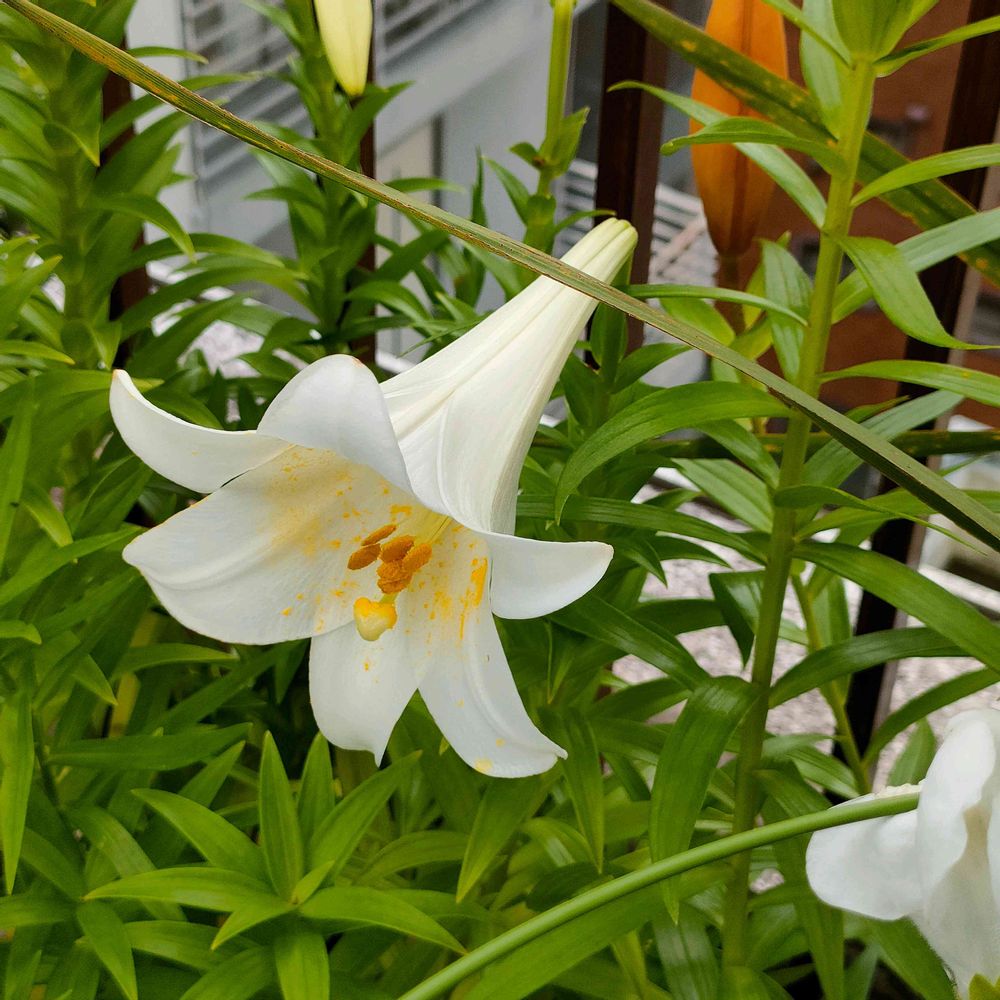 ユリ🧡の次はテッポウユリ🤍も咲き始めています。