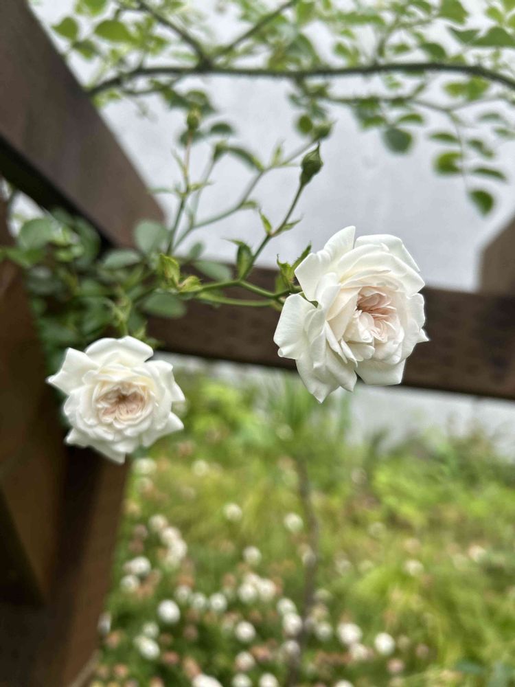 ⑤パーゴラのホワイトドロシーパーキンス🤍長尺苗をお迎えして初開花