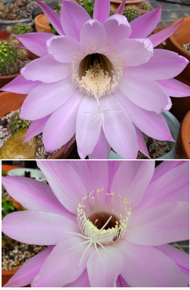 昨夜から開花が進んだ 私の大好きな🌸ラッパサボテンのお花 2鉢。