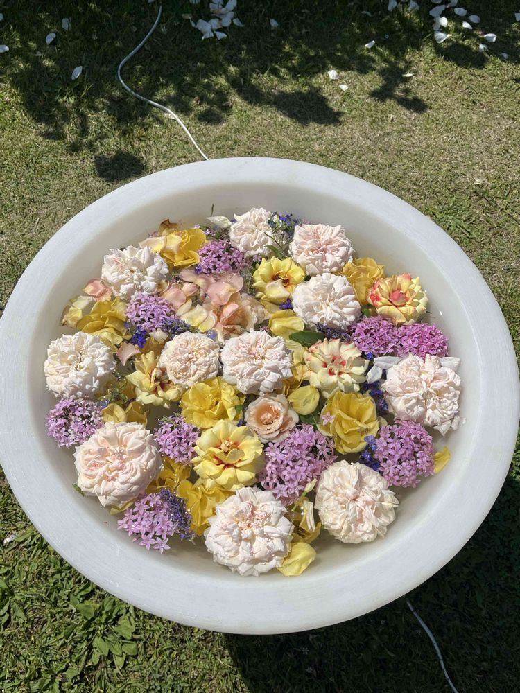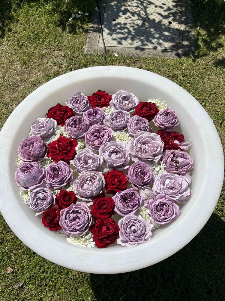 先日行った大船フラワーセンター薔薇園にある花手水🌸🌼💐