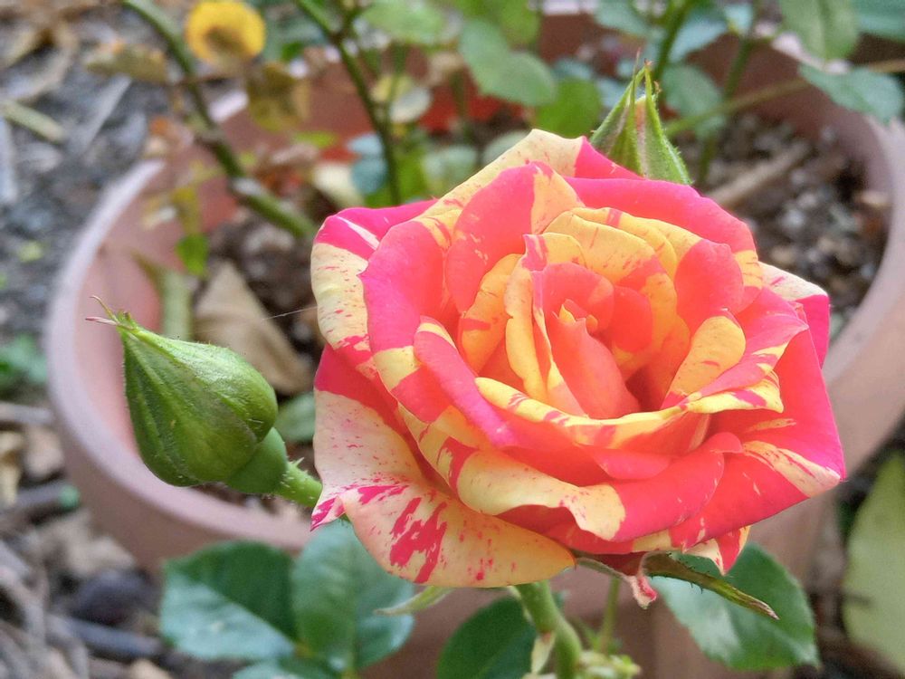 マーブル咲きの薔薇🌹❤️💛