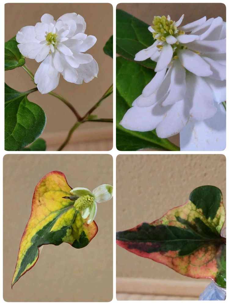 昨日頂いた八重咲きのドクダミと五色のドクダミのアップです。