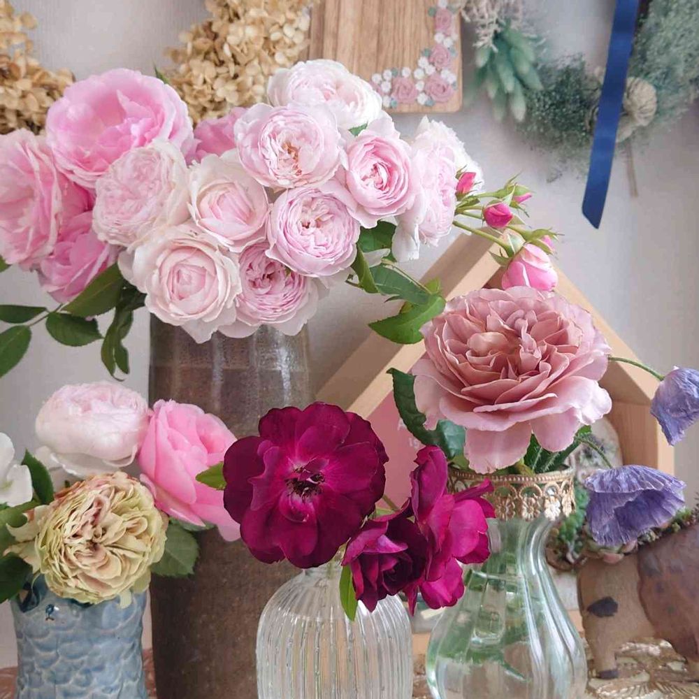 お花屋さんみたい「あちらのバラとこちらのバラを頂こうかしら?」