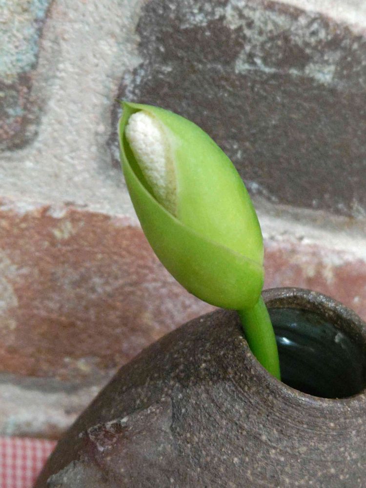 20日経って、ほぼ開花。水芭蕉のようなお花です。
