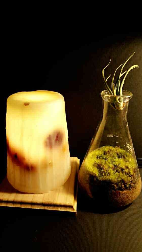三角フラスコにヤマゴケ植え替え‼自作キャンドルライトと仲良し(^-^)