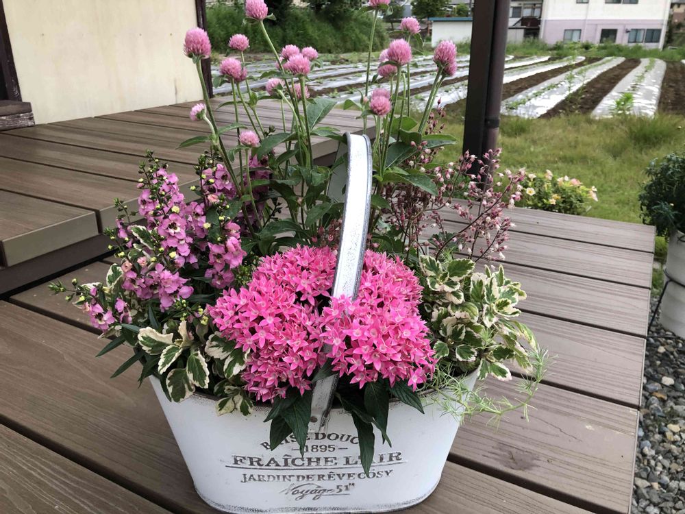 早速、土曜日にお迎えした千日紅とアンゲロニアを入れましたね〜!
