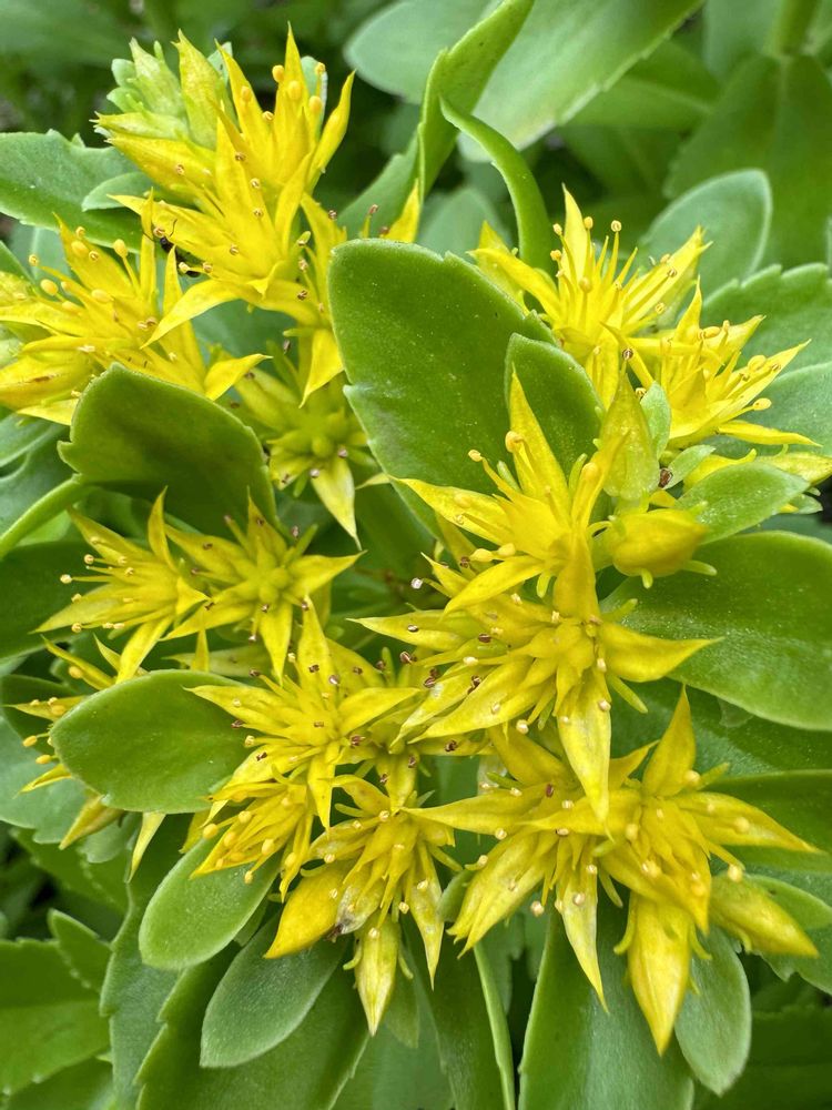 庭のキリンソウが鮮やかな黄色いたくさんの小花を咲かせています。